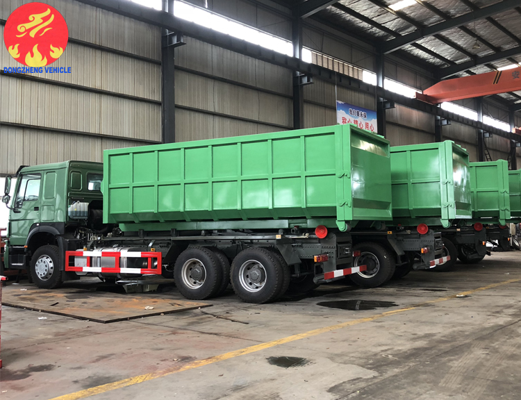 該車型采用重汽豪沃后雙橋336馬力專用底盤,上裝是可伸縮勾臂式結(jié)構(gòu),氣動(dòng)控制,鋼絲胎。