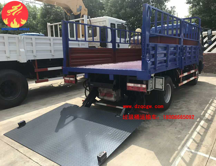 由于人民生活水平不斷提高,為了滿足人們對(duì)垃圾治理的及時(shí)性、徹底性的需求。我公司近期推出一種新的垃圾運(yùn)輸品種即桶裝垃圾運(yùn)輸車。該類型的垃圾運(yùn)輸車為國(guó)五排放,整車上藍(lán)牌,可以市內(nèi)小區(qū)內(nèi)穿梭,車廂為倉(cāng)柵,尾部帶液壓尾板,可一次性處理20-30余桶生活垃圾。大大的提高了垃圾收集的速度。