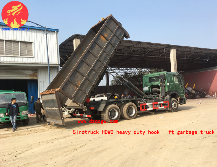 重汽豪沃重型勾臂垃圾車(chē)已調(diào)試并裝運(yùn)完畢,等待船期,即日準(zhǔn)備發(fā)往港口。