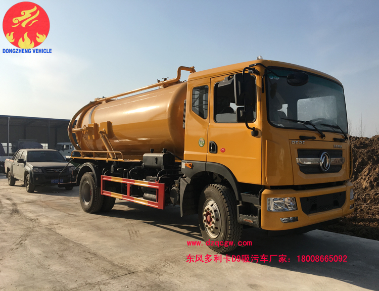 8臺東風多利卡D9新款真空吸污車出廠,該批D9真空吸污車,采用東風D9新款駕駛室,4500mm軸距,康明斯180馬力,罐體容積為9.8立方。配備億豐雙聯(lián)真空泵,帶油水分離器,四通閥,洗手裝置,罐體后封頭球閥控制自流口1個,1個視污窗,1根7m吸糞管,舉升式罐體,罐體兩側油缸,后蓋液壓開啟,機械鎖緊,帶液位報警?蛇x裝承重報警器,進口刮片威龍泵,雙聯(lián)泵,加裝灑水裝置。