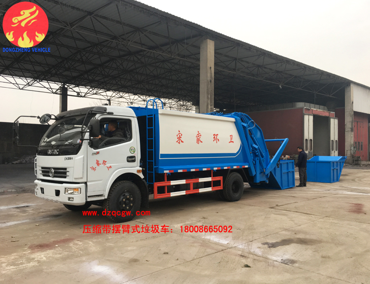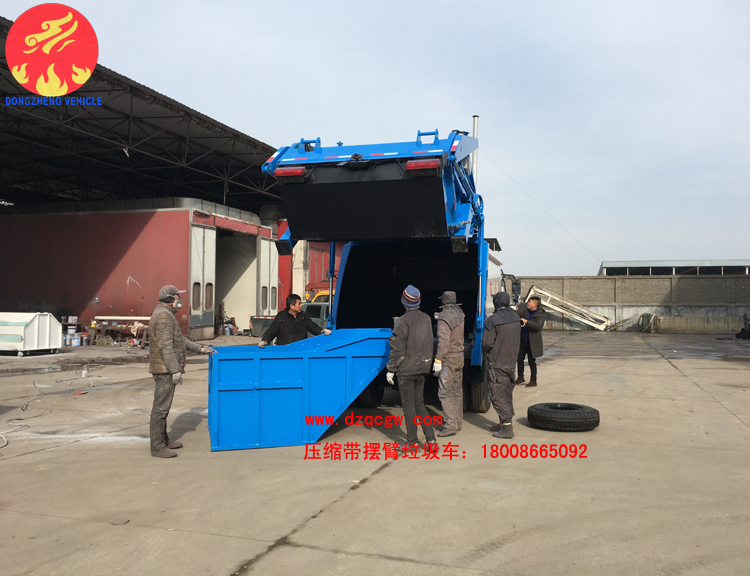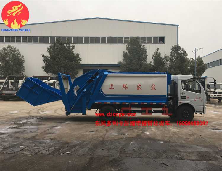 國(guó)五東風(fēng)多利卡D7壓縮帶擺臂式垃圾車(chē)出廠,該車(chē)整車(chē)型號(hào)為SZD5110ZYS5型壓縮式垃圾車(chē),采用東風(fēng)多利卡D7國(guó)五底盤(pán),3800mm軸距,玉柴150馬力發(fā)動(dòng)機(jī),鋼絲胎帶ABS。壓縮垃圾箱體為8個(gè)方,后裝置為擺臂式帶斗?蓮V泛用于城鎮(zhèn)生活垃圾的收集。