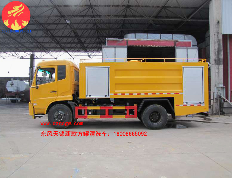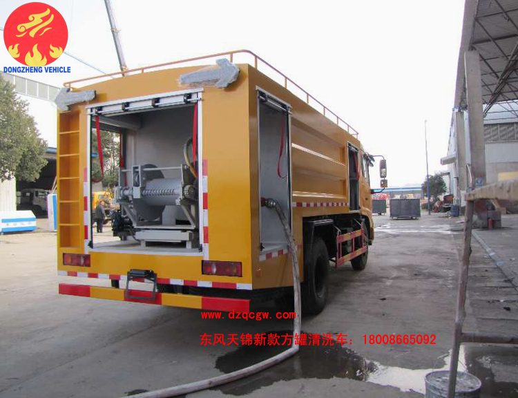 該東風(fēng)天錦新款方罐清洗車(chē)的配置如下:采用3800mm軸距,康機(jī)180馬力,內(nèi)配24Mpa清洗泵,高質(zhì)量液壓伸縮卷盤(pán)。60米高壓管,10個(gè)碳鋼噴頭。