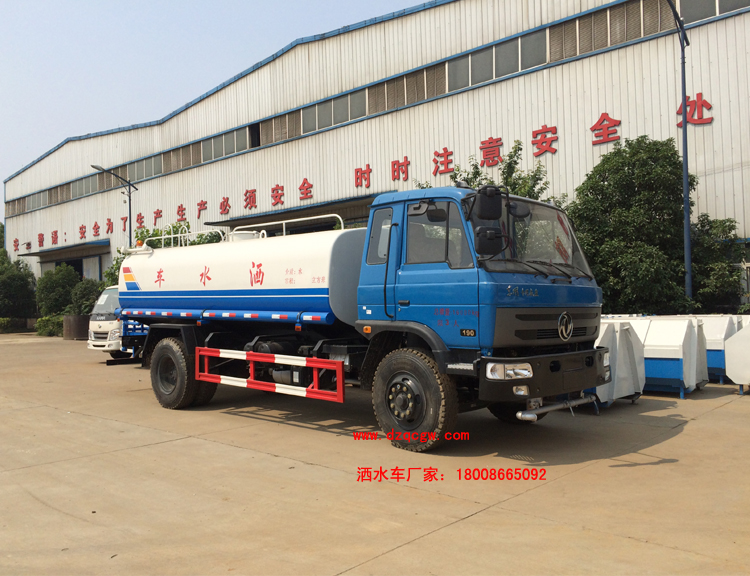 底盤說明:東風(fēng)153G型平頂豪華駕駛室,可選用3950,4500,4700mm軸距,玉柴或康明斯國四發(fā)動(dòng)機(jī),六檔變速箱,250mm雙層車架,3.6T/9T前后橋,9.00-20-16尼龍?zhí),帶斷氣剎,動(dòng)力轉(zhuǎn)向,排氣制動(dòng)。水罐有效容積:10立方米。 專用功能:該多功能灑水車適合于各種路面的灑水、噴霧、降溫、除塵、沖洗塵埃臟物,亦可用于園林綠化、市政環(huán)衛(wèi)、路面養(yǎng)護(hù)及應(yīng)急消防、運(yùn)輸飲用水等。專用部分由罐體、水泵、球閥、輸水管道、灑水裝置等部件組成。水泵、取力箱、球閥均為國家定型產(chǎn)品,具有性能良好,工作可靠、壓力高、流量大、油耗低等特點(diǎn)。 改裝部分:標(biāo)配前沖、后灑、側(cè)噴、工作平臺(tái)、綠化高炮、自流閥、消防接口,輸水管3米2根,8噸以上罐體帶高位花灑2個(gè),億豐泵或金龍泵,控制方式為手動(dòng)。選裝氣動(dòng)閥門控制;高位花灑,大鴨嘴,藥盤,罐體側(cè)面加裝萬向可調(diào)節(jié)噴頭,罐體后部壓塵噴灑裝置,兩個(gè)圓警燈或長警燈,LED箭頭燈,泵可選裝威龍泵或農(nóng)藥噴霧裝置。 |