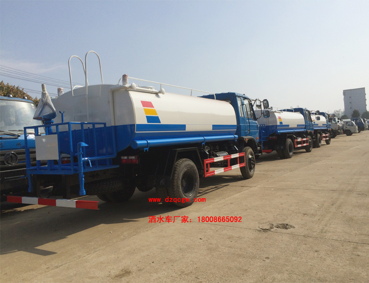 底盤說明:153豪華駕駛室,軸距4500mm或4700mm,4950mm,康機(jī)或玉柴國四發(fā)動(dòng)機(jī),大同6檔變速箱,5t前橋/10t后橋,10.00尼龍?zhí),車?50雙層。罐體有效容積:9.97立方米。帶免征。 專用功能:該多功能灑水車適合于各種路面的灑水、噴霧、降溫、除塵、沖洗塵埃臟物,亦可用于園林綠化、市政環(huán)衛(wèi)、路面養(yǎng)護(hù)及應(yīng)急消防、運(yùn)輸飲用水等。專用部分由罐體、水泵、球閥、輸水管道、灑水裝置等部件組成。水泵、取力箱、球閥均為國家定型產(chǎn)品,具有性能良好,工作可靠、壓力高、流量大、油耗低等特點(diǎn)。 改裝部分:標(biāo)配前沖、后灑、側(cè)噴、工作平臺(tái)、綠化高炮、自流閥、消防接口,輸水管3米2根,8噸以上罐體帶高位花灑2個(gè),億豐泵或金龍泵,控制方式為手動(dòng)。選裝氣動(dòng)閥門控制;高位花灑,大鴨嘴,藥盤,罐體側(cè)面加裝萬向可調(diào)節(jié)噴頭,罐體后部壓塵噴灑裝置,兩個(gè)圓警燈或長警燈,LED箭頭燈,泵可選裝威龍泵或農(nóng)藥噴霧裝置。 |