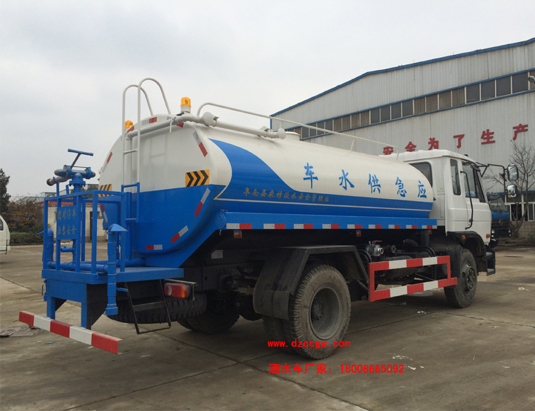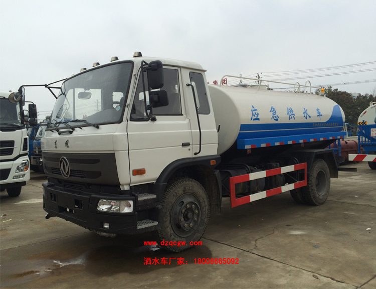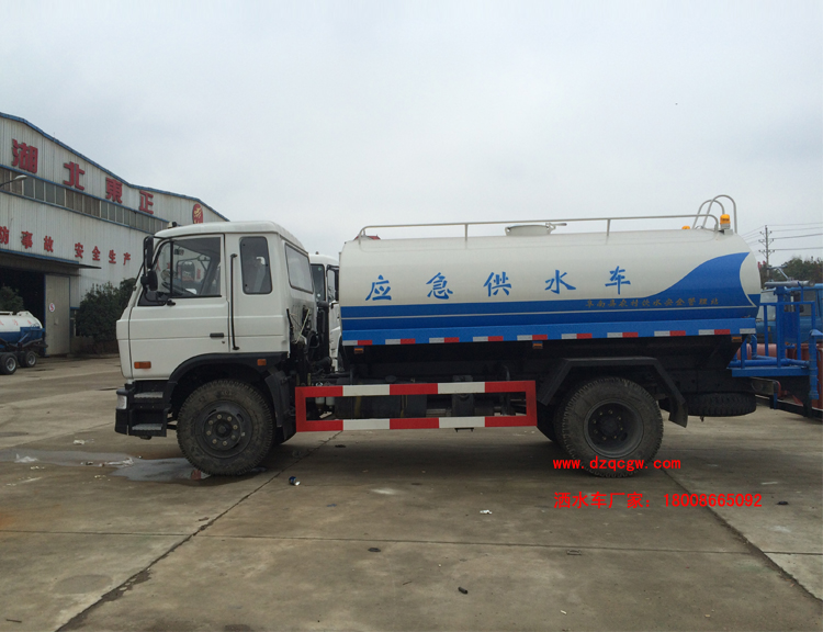 底盤(pán)說(shuō)明:東風(fēng)153G型豪華駕駛室,電動(dòng)玻璃,軸距3950,4500,4700mm,六檔/陜齒小八檔變速箱,前橋3.6/5噸,后橋8/9/10噸,250雙層直通梁,9.00-20/10.00-20尼龍?zhí)。外形長(zhǎng)8600,8400,7500與軸距4700,4500,3950一一對(duì)應(yīng)。罐體有效容積:9.45立方米。帶免征。 專(zhuān)用功能:該多功能灑水車(chē)適合于各種路面的灑水、噴霧、降溫、除塵、沖洗塵埃臟物,亦可用于園林綠化、市政環(huán)衛(wèi)、路面養(yǎng)護(hù)及應(yīng)急消防、運(yùn)輸飲用水等。專(zhuān)用部分由罐體、水泵、球閥、輸水管道、灑水裝置等部件組成。水泵、取力箱、球閥均為國(guó)家定型產(chǎn)品,具有性能良好,工作可靠、壓力高、流量大、油耗低等特點(diǎn)。 改裝部分:標(biāo)配前沖、后灑、側(cè)噴、工作平臺(tái)、綠化高炮、自流閥、消防接口,輸水管3米2根,8噸以上罐體帶高位花灑2個(gè),億豐泵或金龍泵,控制方式為手動(dòng)。選裝氣動(dòng)閥門(mén)控制;高位花灑,大鴨嘴,藥盤(pán),罐體側(cè)面加裝萬(wàn)向可調(diào)節(jié)噴頭,罐體后部壓塵噴灑裝置,兩個(gè)圓警燈或長(zhǎng)警燈,LED箭頭燈,泵可選裝威龍泵或農(nóng)藥噴霧裝置。 |