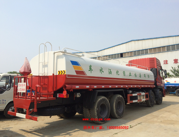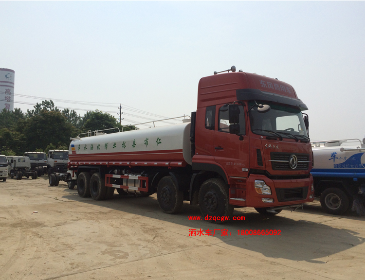 底盤說明:東風天龍前四后八D310平頭標準頂駕駛室,國四康機270馬力發(fā)動機,軸距1850+4350+1350mm,11.00-20尼龍?zhí),陜齒9檔變速箱,7噸雙前橋,10噸單減后橋,前橋盤式制動,ECU限速,帶ABS,行車記錄儀。罐體有效容積:19.8立方米。運輸介質(zhì):水。帶免征。 專用功能:該多功能灑水車適合于各種路面的灑水、噴霧、降溫、除塵、沖洗塵埃臟物,亦可用于園林綠化、市政環(huán)衛(wèi)、路面養(yǎng)護及應急消防、運輸飲用水等。專用部分由罐體、水泵、球閥、輸水管道、灑水裝置等部件組成。水泵、取力箱、球閥均為國家定型產(chǎn)品,具有性能良好,工作可靠、壓力高、流量大、油耗低等特點。 改裝部分:標配前沖、后灑、側(cè)噴、工作平臺、綠化高炮、自流閥、消防接口,輸水管3米2根,8噸以上罐體帶高位花灑2個,億豐泵或金龍泵,控制方式為手動。選裝氣動閥門控制;高位花灑,大鴨嘴,藥盤,罐體側(cè)面加裝萬向可調(diào)節(jié)噴頭,罐體后部壓塵噴灑裝置,兩個圓警燈或長警燈,LED箭頭燈,泵可選裝威龍泵或農(nóng)藥噴霧裝置。 |