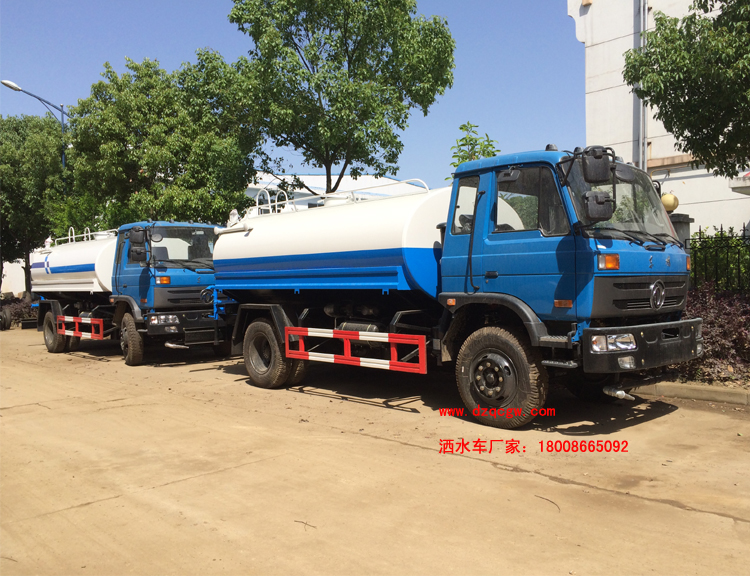 底盤(pán)說(shuō)明:東風(fēng)145國(guó)四駕駛室,采用3950mm軸距,玉柴或康明斯國(guó)四發(fā)動(dòng)機(jī),250mm大梁,東風(fēng)6檔變速箱,前橋3.6噸,后橋9噸,9.00-20輪胎。罐體有效容積:7.56立方米。運(yùn)輸介質(zhì):水。帶免征。 專用功能:該多功能灑水車(chē)適合于各種路面的灑水、噴霧、降溫、除塵、沖洗塵埃臟物,亦可用于園林綠化、市政環(huán)衛(wèi)、路面養(yǎng)護(hù)及應(yīng)急消防、運(yùn)輸飲用水等。專用部分由罐體、水泵、球閥、輸水管道、灑水裝置等部件組成。水泵、取力箱、球閥均為國(guó)家定型產(chǎn)品,具有性能良好,工作可靠、壓力高、流量大、油耗低等特點(diǎn)。 改裝部分:標(biāo)配前沖、后灑、側(cè)噴、工作平臺(tái)、綠化高炮、自流閥、消防接口,輸水管3米2根,8噸以上罐體帶高位花灑2個(gè),億豐泵或金龍泵,控制方式為手動(dòng)。選裝氣動(dòng)閥門(mén)控制;高位花灑,大鴨嘴,藥盤(pán),罐體側(cè)面加裝萬(wàn)向可調(diào)節(jié)噴頭,罐體后部壓塵噴灑裝置,兩個(gè)圓警燈或長(zhǎng)警燈,LED箭頭燈,泵可選裝威龍泵或農(nóng)藥噴霧裝置。 |
