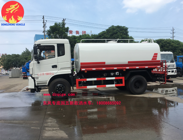 底盤說明:東風(fēng)單橋新款駕駛室,可選用3950mm或4500mm軸距,國五康機(jī)170或康機(jī)190馬力發(fā)動(dòng)機(jī),9.00-20尼龍?zhí)ィ?950mm軸距對應(yīng)前橋3.6噸,后橋8噸,4500mm軸距對應(yīng)前橋3.6噸,后橋9噸。斷氣剎,方向助力,ABS,電動(dòng)玻璃,帶下防護(hù)。外形長8500,7500mm與軸距4500,3950mm一一對應(yīng)。罐體有效容積:11.8立方米。運(yùn)輸介質(zhì):丙酮水溶液。帶免征。 專用功能:該多功能灑水車適合于各種路面的灑水、噴霧、降溫、除塵、沖洗塵埃臟物,亦可用于園林綠化、市政環(huán)衛(wèi)、路面養(yǎng)護(hù)及應(yīng)急消防、運(yùn)輸飲用水等。專用部分由罐體、水泵、球閥、輸水管道、灑水裝置等部件組成。水泵、取力箱、球閥均為國家定型產(chǎn)品,具有性能良好,工作可靠、壓力高、流量大、油耗低等特點(diǎn)。 改裝部分:標(biāo)配前沖、后灑、側(cè)噴、工作平臺、綠化高炮、自流閥、消防接口,輸水管3米2根,8噸以上罐體帶高位花灑2個(gè),億豐泵或金龍泵,控制方式為手動(dòng)。選裝氣動(dòng)閥門控制;高位花灑,大鴨嘴,藥盤,罐體側(cè)面加裝萬向可調(diào)節(jié)噴頭,罐體后部壓塵噴灑裝置,兩個(gè)圓警燈或長警燈,LED箭頭燈,泵可選裝威龍泵或農(nóng)藥噴霧裝置。 |
