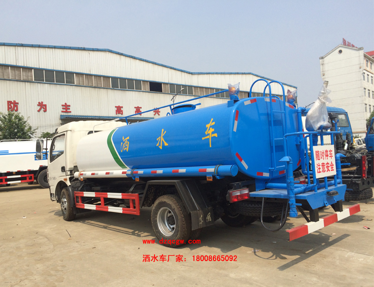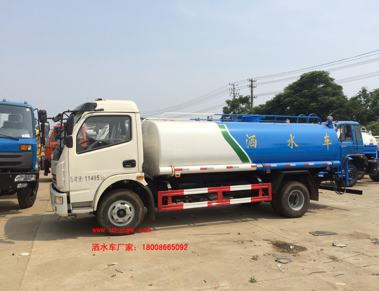 底盤說明:東風(fēng)多利卡國五單排可翻轉(zhuǎn)駕駛室,3800mm軸距,多種可選國五發(fā)動機(jī),萬里揚(yáng)6檔變速箱,鋼絲胎,ABS,方向助力,斷氣剎。罐體有效容積:7.35立方米,介質(zhì):水,密度:1.0噸/立方米,罐體外形尺寸(長×長軸×短軸)(mm):4200×2000×1300。 專用功能:該多功能灑水車適合于各種路面的灑水、噴霧、降溫、除塵、沖洗塵埃臟物,亦可用于園林綠化、市政環(huán)衛(wèi)、路面養(yǎng)護(hù)及應(yīng)急消防、運(yùn)輸飲用水等。專用部分由罐體、水泵、球閥、輸水管道、灑水裝置等部件組成。水泵、取力箱、球閥均為國家定型產(chǎn)品,具有性能良好,工作可靠、壓力高、流量大、油耗低等特點(diǎn)。 改裝部分:標(biāo)配前沖、后灑、側(cè)噴、工作平臺、綠化高炮、自流閥、消防接口,輸水管3米2根,8噸以上罐體帶高位花灑2個,億豐泵或金龍泵,控制方式為手動。選裝氣動閥門控制;高位花灑,大鴨嘴,藥盤,罐體側(cè)面加裝萬向可調(diào)節(jié)噴頭,罐體后部壓塵噴灑裝置,兩個圓警燈或長警燈,LED箭頭燈,泵可選裝威龍泵或農(nóng)藥噴霧裝置。 |