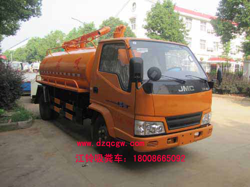底盤說明江鈴單排可翻轉駕駛室,國五江鈴115馬力柴油發(fā)動機,7.00鋼絲胎,油剎,五檔箱,后橋4噸,帶排氣制動,ABS。該車主要用于吸排糞便,罐體有效容積: 4.41立方米,介質(zhì):液態(tài)污物,罐體外形尺寸(長×長軸×短軸)(mm):3600×1650×1100。