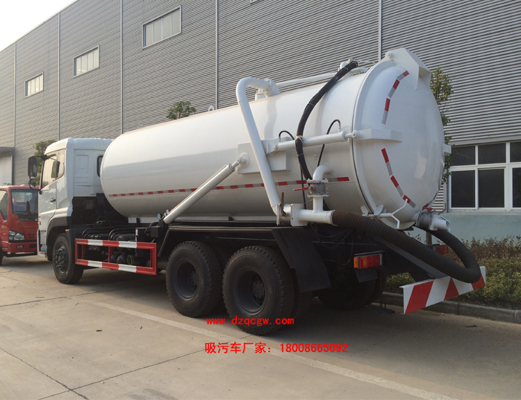 底盤說明:東風天龍后雙橋D310平頭標準頂駕駛室,東風康明斯高壓共軌發(fā)動機,軸距4350+1350(mm),前橋7噸,后橋10噸,11.00R20鋼子胎,空調,巡航系統(tǒng)。罐體有效容積:14.5立方米。 專用功能:吸污車主要用于清洗城市下水道,管道的沉積物,死角泥溝的疏通,也可用于清洗工業(yè)排液管道,壁面等,并可兼作灑水,運水和沖公路用,緊急時可用于救火。 改裝部分:標配國產多路閥、油缸;隨州真空泵,油水分離器,四通閥,洗手裝置。罐體后封頭球閥控制自流口1個,1個視污窗,1根7m吸糞管,舉升式罐體,罐體兩側油缸,后蓋液壓開啟,機械鎖緊,帶液位報警;普通油漆。8方以上安裝雙聯(lián)真空泵。選裝承重報警器,進口刮片威龍泵,雙聯(lián)泵,加裝灑水裝置。 |