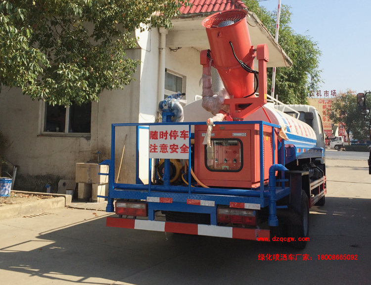 底盤說明:東風福瑞卡單排可翻轉(zhuǎn)駕駛室,3308mm軸距,多種可選國五發(fā)動機,萬里揚5檔變速箱,前橋2噸,后橋4噸,7.00R16鋼絲胎,ABS,方向助力,選裝空調(diào),中控鎖,電動門窗。罐體有效容積:3.78立方米。 專用功能:主要使用于園林綠化,道路綠化帶維護,森林維護,農(nóng)田打藥,果園打藥等。運輸各種農(nóng)藥,利用風機原理來達到霧化及噴灑農(nóng)藥的最優(yōu)效果。 改裝部分:裝配工作平臺,安裝農(nóng)藥噴灑專用炮及綠化灑水炮(若有特殊要求還可安裝消防灑水車的消防灑水泵),送藥筒可360度全方位的旋轉(zhuǎn),以便各種角度的農(nóng)作物及植物都能受益。在工作平臺尾部配備專用小發(fā)動機組,為農(nóng)藥噴灑炮提供專一的動力源來達到更好的霧化效果,射程可達到45米,為各種工作環(huán)境下的作業(yè)提供有效的保障。配備專用灑水泵及灑水系統(tǒng),可抽水排水,也可通過消防栓進水。 |